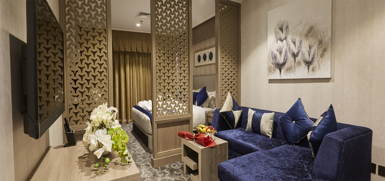 Enjoy the most beautiful nights in your life in Al Hamra Ballroom. We take care of all the details to make it unique and special. Al Hamra Ballroom welcomes you with the utmost hospitality and inviting ambiance, and because your satisfaction is our priority, we offer an exceptional and varied selection of buffets to suit all tastes. We invite you to spend your wedding night in one of the hotel suites with modern décor and picturesque location.